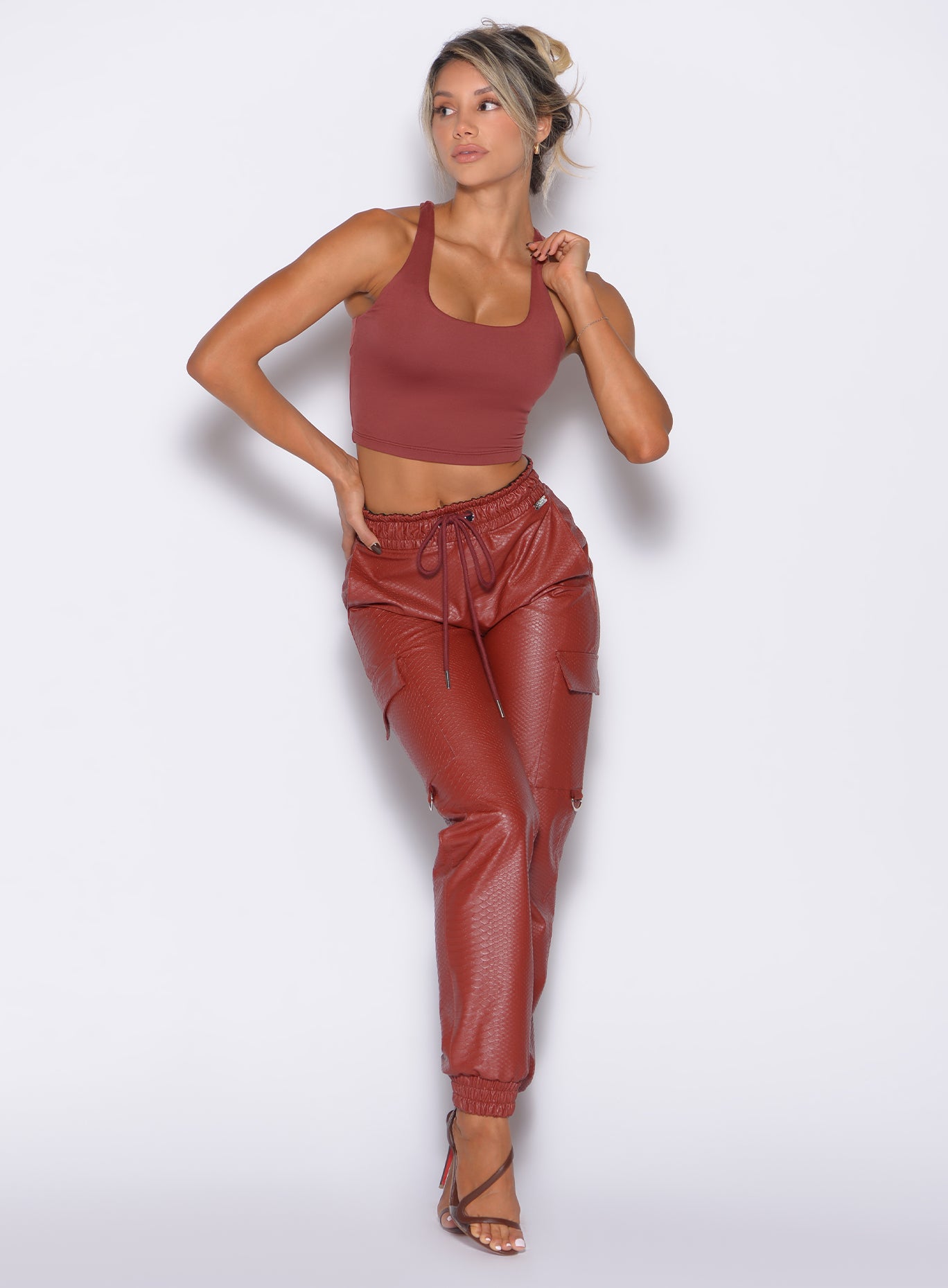 Our Liquid Cargo pants were designed for effortless day-to-night style. ensuring you make a statement wherever you go. Made from premium. sleek PU leather that looks and feels just like the real thing. these cargos feature a flattering high-waisted fit. convenient side pockets. and eye-catching hardware details. The scrunch-back design adds a lifted. contoured look that exudes beauty and confidence. Perfect for dinners. dates. or a girls night out. the Liquid Cargos guarantee you’ll turn heads all evening.